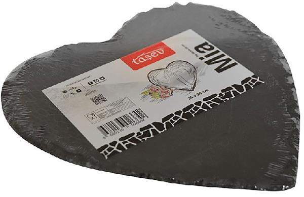 Taşev Mia Kalp Tabak, arduvazın ısıyı tutma özelliği sayesinde sıcak servislerinizin vazgeçilmezi olacak. Özellikle peynir ve pasta servisleriniz, Mia ile bambaşka bir havaya bürünecek. Eğer arzu ederseniz, servisten önce tabağı ısıtarak yemeklerinizi sofrada sıcak tutabilirsiniz. İki boyu bulunan Mia ile sıcak sunumlarınız bir şölene dönüşecek.